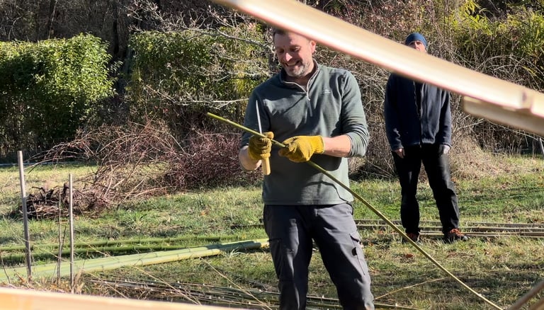 Plus qu’un chantier, c’était une démarche : apprendre en faisant, dans une posture d’humilité face au matériau, au climat, au sol, mais aussi face aux autres. Le bambou, par sa souplesse et sa rigueur, impose une écoute fine et un apprentissage sans cesse renouvelé.
