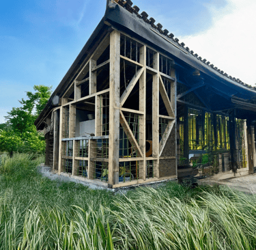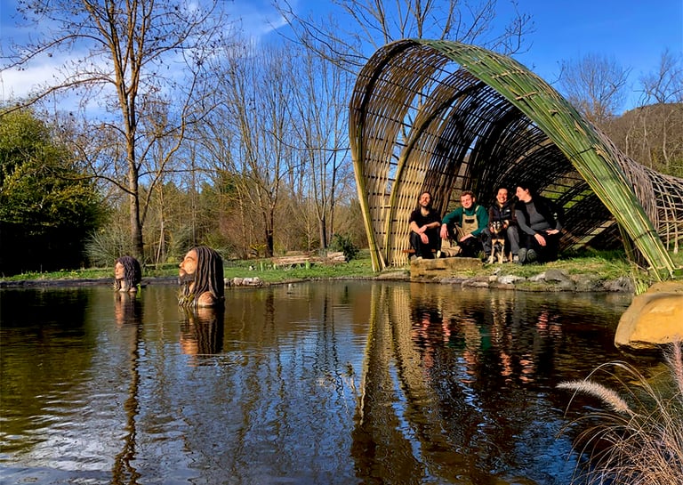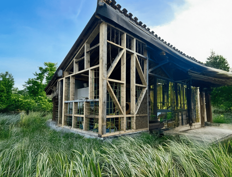 Cette construction est née d’un échange simple et essentiel : bâtir avec ce que le lieu offre, en contrepartie d’un geste, d’un savoir-faire. Le bambou, cultivé dans le parc...